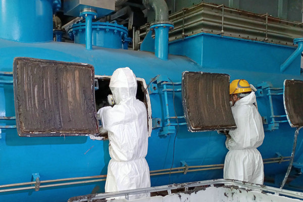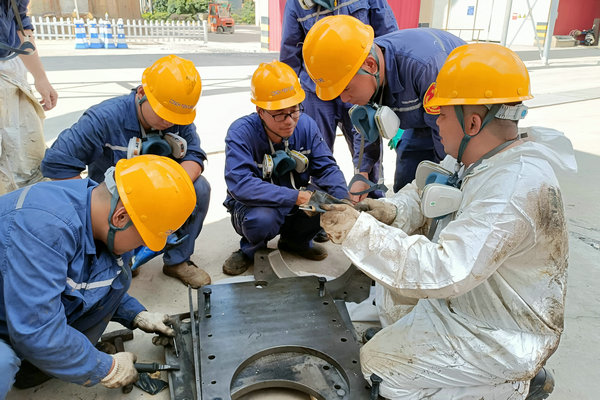 抓設備保生產穩定運行。陽春海創以設備維護為抓手,穩定生產運行,結合生產處置實際情況,利用生產停機間隙精益部署設備維保工作,確保設備穩定、生產高效運行,不斷提升設備基礎管理水平。生產處長王興同志身先士卒,充分發揮黨員先鋒模范帶頭作用,確保現場作業安全、質量以及進度受控,保質保量完成各項維保任務,滿足設備安全、穩定、長周期運行需要。