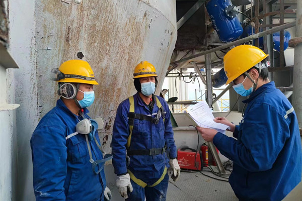他們嚴陣以待,像身披戰甲的戰士,在認真聽取班組負責人的工作部署,以及現場安全管理人員的安全技術交底。作業前的安全交底是對檢修作業危險源進行精準辨識的有效途徑,警示每一位新老員工要熟知作業過程中可能出現的各種不安全情況,并能迅速做出反應,消除隱患,順利完成檢修作業。