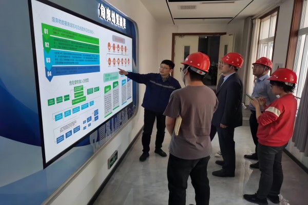 馬總帶領姚總一行來到生產現場,實地參觀了解濟源海中儲庫儲存規模、生產處置能力,并到三樓中央控制室參觀了實時監控畫面,期間馬總詳細介紹了固危廢準入標準、漿渣、廢液、固態系統的生產工藝處置流程、危險源預警管理系統等。