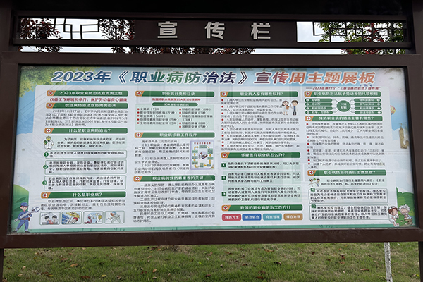 為積極營造職業(yè)健康宣傳氛圍,4月25-26日,公司在生產(chǎn)廠區(qū)、辦公樓等醒目位置懸掛宣傳橫幅,“預(yù)防職業(yè)病,從提高健康素養(yǎng)做起”、“守護職業(yè)健康,共享幸福生活”等宣傳標語隨處可見。為深入普及職業(yè)病防治知識,公司制作了職業(yè)病防治法宣傳展板,讓員工加深了對職業(yè)健康知識的理解,增強自身責任意識。