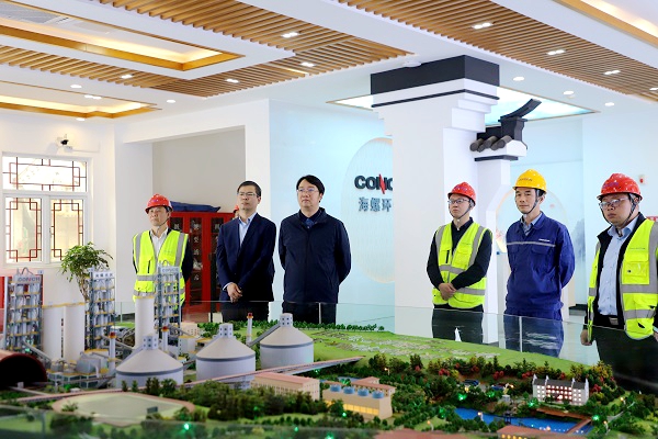 隨后,調研組在展廳沙盤前,觀看了海螺環保宣傳視頻。
