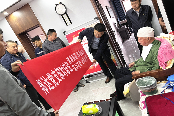 在慰問現(xiàn)場,邦達環(huán)保黨支部與定邊縣非公經濟組織黨工委的黨員同志們向大家講解了抗美援朝戰(zhàn)役及張元孝老人的英雄事跡,并與老人“拉起家常”、促膝談心,傾聽老人講述過去的革命歲月和年代故事。