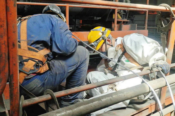 周圍是其它設(shè)備運(yùn)轉(zhuǎn)的轟鳴聲,加上電焊的烘烤,設(shè)備間檢修現(xiàn)場(chǎng)宛如桑拿房,在這樣的地方只是站上幾分鐘便會(huì)滿頭大汗,然而生產(chǎn)處檢修的員工身著防化服、手套、安全帽、面罩,全副武裝、一絲不茍地進(jìn)行著檢修工作。準(zhǔn)備工器具、現(xiàn)場(chǎng)布置隔離、設(shè)備維護(hù)保養(yǎng)、清理混合器,盤龍漿渣槍頭澆注料修補(bǔ)、行車防墜網(wǎng)安裝、廢液管道保溫、破碎機(jī)刀齒焊補(bǔ)……自檢修開(kāi)始以來(lái),無(wú)論溫度有多高、任務(wù)有多重、環(huán)境有多差,他們都毫無(wú)怨言,所有規(guī)章制度嚴(yán)格執(zhí)行,所有檢修工序一絲不茍進(jìn)行,千陽(yáng)海螺環(huán)保檢修工作按計(jì)劃順利推進(jìn)。