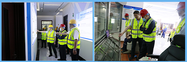 在現(xiàn)場中控操作和行車操作室,調(diào)研組一行通過現(xiàn)場監(jiān)控、中控操作畫面及操作間實(shí)景,直觀、清晰地了解了水泥窯協(xié)調(diào)處置工藝“減量化、資源化、無害化”的技術(shù)流程,同時查看了文山海螺環(huán)保固危廢處置系統(tǒng)、設(shè)備運(yùn)行情況。