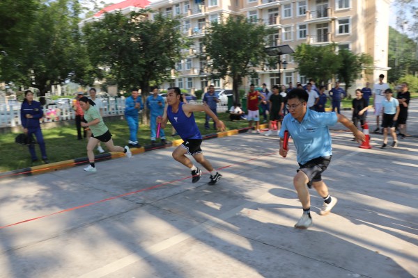 首先進行的是“挑戰自我,跑出健康”6×100米接力賽。只見選手們一個個做好熱身運動后就蓄勢待發。比賽開始后運動員們像豹子一樣飛奔而出,保證速度的同時與隊友緊密協作,力爭拿下比賽的冠軍。