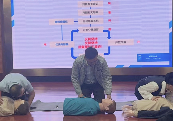 在培訓(xùn)現(xiàn)場,專家教授簡要闡述工傷認(rèn)定范圍、權(quán)利與義務(wù)等工傷基礎(chǔ)知識,深入解讀《工傷保險條例》內(nèi)容,重點講解了如何預(yù)防和減少工傷事故發(fā)生,通過基礎(chǔ)知識普及、案例分析、視頻化素材講解等形式為大家上了一堂生動的工傷預(yù)防培訓(xùn)課;同時為增強參培人員現(xiàn)場的體驗感,精心安排急救心肺復(fù)蘇實操課程,將實操搬進課堂,進一步增強工傷預(yù)防意識,強化自救和搶險技能,提高快速反應(yīng)能力和應(yīng)急救援能力。