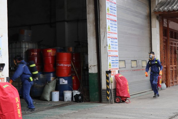 演練中,參演人員牢記角色演練要求,報警員工能準確將火災事故發生地點及火災性質等詳細情況匯報給救援組組長,組長收到報警信息后有序將信息匯報給總指揮,總指揮收到匯報信息后有序指揮現場救援組人員穿戴好正壓呼吸器提上滅火器奔赴火場開展救火,整個過程銜接有序,火災被迅速撲滅。