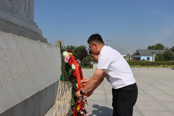 宣誓后,大家參觀了八路軍120師抗日誓師紀念碑,碑體正面書寫著“八路軍一二零師抗日誓師紀念碑”幾個大字,碑座四面鐫刻有花崗巖浮雕,內容分別為《進駐莊里》《抗日誓師》《東渡黃河》《奮勇殺敵》,這座用英勇戰士的心血與信念鑄就的紀念碑猶如一把利刃堅挺地屹立在大家心中。