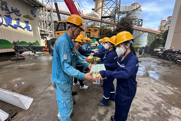 7月的廣東萬里無云,氣溫節節攀升,陽春海螺水泥與陽春海螺環保員工正在忙碌地開展檢修工作,檢修現場廠區員工的額上爬滿了汗珠、工作服也汗濕...為做好檢修期間防暑降溫工作,保障現場檢修人員的身心健康,7月12日,陽春環保采購了王老吉、菊花茶及點心等物資,為奮戰在一線的廠區員工送去了絲絲涼意,獻上了一份誠摯的關心,本次送清涼活動得到了陽春海螺水泥及陽春海螺環保員工的一致好評,推動了廠區兩公司的深度融合,為后續的生產經營工作奠定了堅實的基礎。