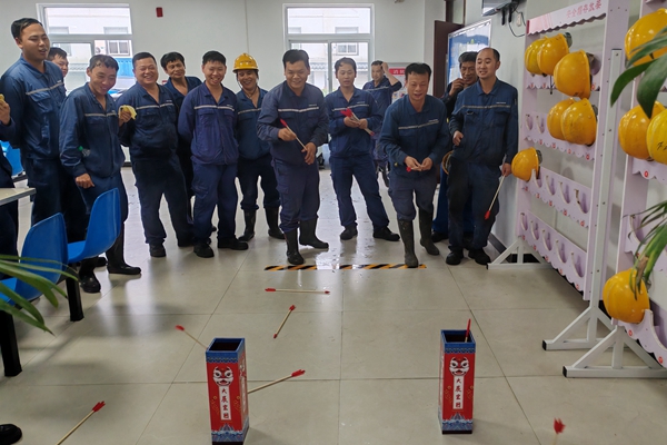 投壺是中國古代士大夫宴飲時做的一種投擲游戲,也是一種禮儀。在戰(zhàn)國時期較為盛行,尤其是在唐朝,得到了發(fā)揚光大。今年端午節(jié)采用投壺活動也是為了傳承、感受中華傳統(tǒng)娛樂形式。員工們對投壺活動都非常感興趣,躍躍欲試,站在線外,向1.5米距離遠(yuǎn)的瓷壺投射竹箭,看似簡單,實則非常考驗投壺者的力道、眼力及協(xié)調(diào)能力。