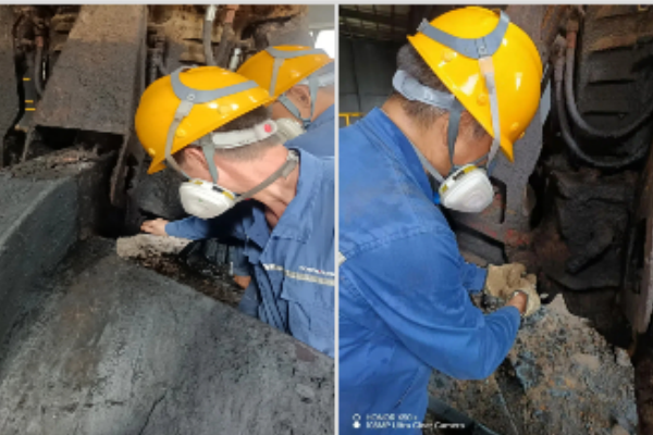 在一處油站潤滑油過濾作業點,一組檢修隊伍正“激戰正酣”。他們輪流爬進油箱人孔門進行內部清理作業。油箱清理工作是一項精細且艱巨的任務,耗時費力,常常擦拭許久,內部鐵屑仍清理不徹底,別出心裁地想到用面團蘸取油箱內部的鐵屑。員工們既有明確的分工,又有緊密的協作,同時始終將安全牢記于心。每兩人一組,一人打錘,另一人則扶著扳手,以防扳手意外飛出傷人。檢修工人能將安全施工落實得精準到位。