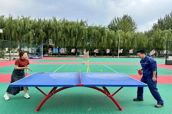 把目光轉移到海螺環保,一排排整齊的隊伍蓄勢待發,成員迫不及待地參與到緊張刺激的籃球友誼賽中。