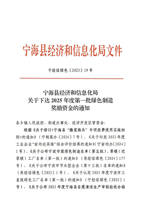 此次榮獲“三星級綠色工廠”,標志著寧海馨源泰在綠色發展與高效生產的道路上邁出了堅實的一步。未來,公司將繼續深化綠色發展戰略,推動技術創新,優化生產流程,致力于成為綠色發展的典范。