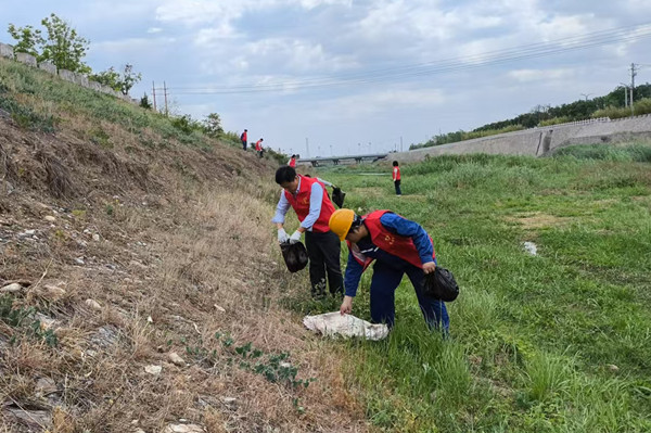 如果說紅色劇本殺是一場思想的洗禮,那么接下來開展的“河我一起”石川河道清潔行動志愿服務,則是青年團員們用實際行動踐行五四精神的生動體現(xiàn)。石川河作為渭河一級支流,承載著富平人民的深厚情感。2015年習近平總書記在座談會上對石川河生態(tài)治理的關切,始終激勵著富平環(huán)保人砥礪前行。當天上午,青年志愿者們奔赴石川河畔,開展“河我一起”生態(tài)保護行動。烈日下,他們沿著2公里長的河岸線展開“地毯式”清理。面對藏在蘆葦叢中的塑料瓶、卡在石縫里的包裝袋,青年們或彎腰撿拾,或相互配合打撈,不放過任何衛(wèi)生死角。