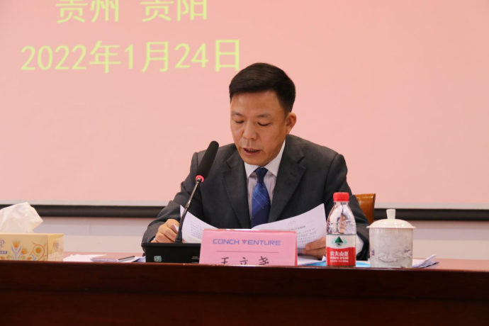 2022年1月24日下午,貴陽海創2022年工作會議在貴陽海螺會議室順利召開。公司班子成員、中層干部、管理骨干、各先進代表和其他在崗職工共48人參加會議,總經理余永教主持會議并作工作報告。
