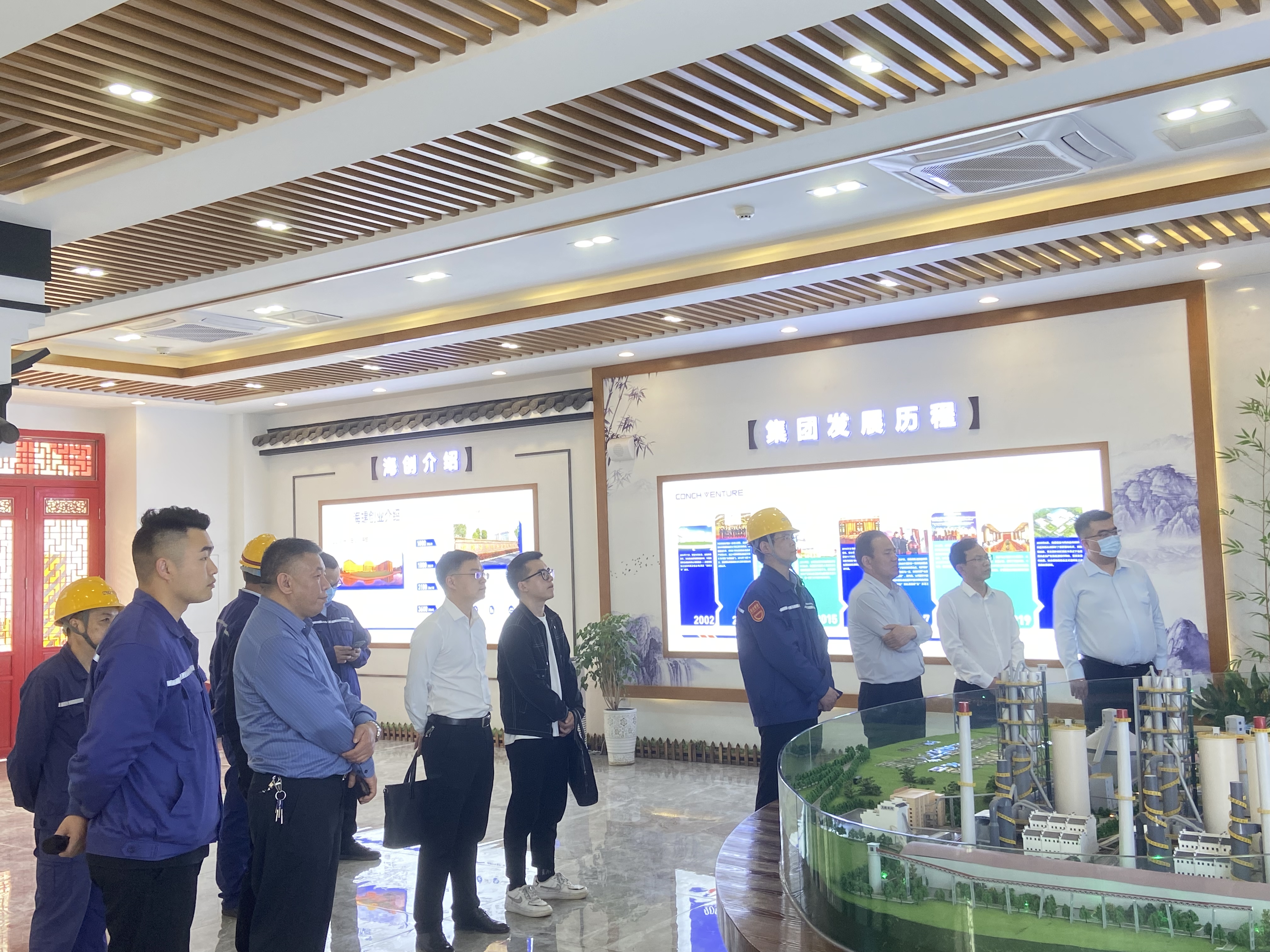 在主廠房一樓展廳,劉飛向考察團(tuán)詳細(xì)介紹了海螺創(chuàng)業(yè)及海螺環(huán)保的基本情況和發(fā)展歷程,重點(diǎn)介紹了利用水泥窯協(xié)同處置固廢危廢的工藝流程和技術(shù)優(yōu)勢(shì)。劉飛表示公司緊抓國(guó)家大力推進(jìn)的綠色發(fā)展機(jī)遇,深入踐行習(xí)近平總書記“綠水青山就是金山銀山”的道路指引,堅(jiān)持“環(huán)保與發(fā)展同行”原則。綠色與升級(jí)兩同步,加大創(chuàng)新投入,堅(jiān)持自主創(chuàng)新,不斷提升發(fā)展水平。同時(shí)公司還將牢抓安全生產(chǎn)環(huán)保,以堅(jiān)決的態(tài)度、有力的措施、務(wù)實(shí)的作風(fēng),確保各項(xiàng)管控措施落到實(shí)處,確保安全生產(chǎn)環(huán)保紅線。