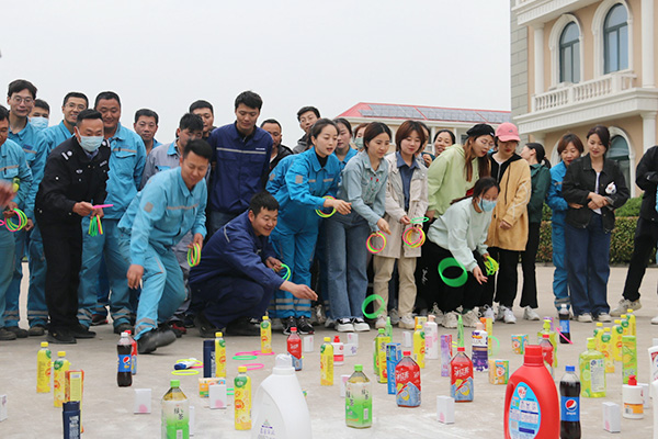 緊接著是別開生趣的心有靈犀游戲,每組2名選手組成,一人比劃一人猜。在比賽的過程中,參賽選手充分發揮想象力,腦洞大開,將詞語生動形象描繪出,有的參賽選手妙語連珠,將大家逗得捧腹大笑,在充滿歡樂的小游戲中,展現了員工間的默契度,也增進了相互間的交流。接下來又進行了拔河和套圈游戲,同樣趣味橫生。