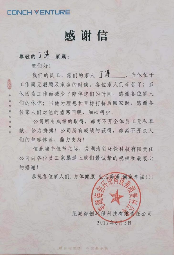 活動結束后,大家喜氣洋洋地將自己親手包的粽子帶回了家,想和家人一起好好品嘗這意義非凡的粽子。同時,為了感謝我們員工對公司的付出、員工家屬對員工的理解,公司特意為參加活動的員工準備了家屬感謝信,向員工的家屬送上最誠摯的節日祝福和最衷心的感謝。