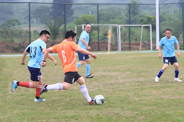 伴隨裁判一聲令下,精彩的比賽拉開了帷幕。比賽剛開始,場上球員都踢得比較保守,他們相互試探著對方的風格和水平。漸漸地,雙方對對手的球風逐漸了解,比賽迅速激烈起來,球員們也漸入佳境,不時打出精妙的配合和有威脅的射門。工作上的疲乏已經蕩然無存,有的只是飛揚的步儀和矯健的身姿以及員工間濃濃的情誼。雖然天氣稍有些涼,但每個球員都熱情似火,盡情展示團隊的默契。場上一次次精彩的射門將比賽逐漸推向高潮,觀眾連連歡呼叫好。競技比賽的魅力感染著在場的每一個人。