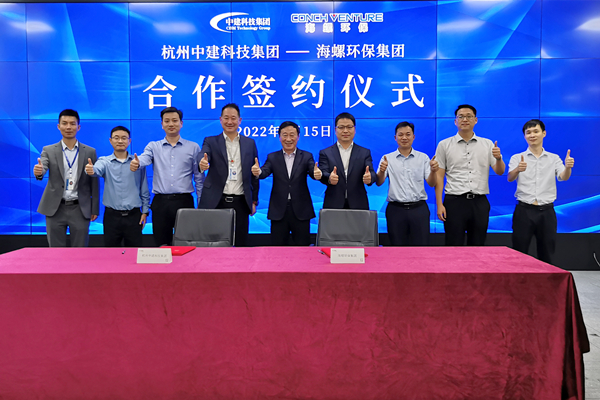 6月15日,應杭州中建科技集團邀請,海螺創業、海螺環保董事長郭景彬,海螺創業董事、海螺環??偨浝硎杳皆L中國水泥網,并簽定合作協議。杭州中建科技集團董事長邵俊攜中國水泥網總經理江勛、杭州中建科技集團副總經理皇甫孜等熱情接待。