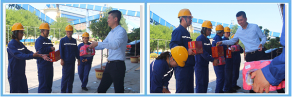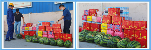 本次“送清涼”活動,單位領導及職能部門人員為奮戰在生產一線的員工發放了西瓜、王老吉等防暑降溫的物品,把清涼送到員工手中,把關懷送到員工心坎上。送清涼小組在為員工送去福利的同時還不忘提醒大家妥善安排作息時間,注意勞逸結合,時刻牢記安全生產的重要性。