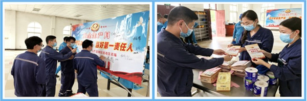 為了將本次安全月活動(dòng)落實(shí)到實(shí)處,使活動(dòng)開展有成效,安全環(huán)保處工作人員通過懸掛宣傳橫幅、發(fā)放宣傳資料、開展簽名活動(dòng)、組織安全知識(shí)有獎(jiǎng)競(jìng)答等方式,積極的向員工宣貫國家安全生產(chǎn)方針政策以及法律法規(guī)、應(yīng)急處置和自救互救方法等內(nèi)容,增強(qiáng)員工安全生產(chǎn)責(zé)任意識(shí),營(yíng)造了一個(gè)良好的安全生產(chǎn)氛圍,為后續(xù)安全生產(chǎn)月工作的順利開展奠定了基礎(chǔ)。