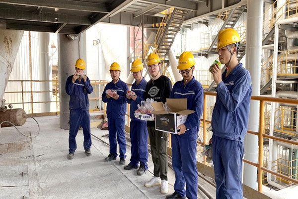 連日來,興業縣持續高溫天氣。為做好常態化疫情防控形勢下的高溫作業和勞動保護工作,切實維護職工勞動安全健康權益,把公司的關愛送到一線職工心坎上,2022年7月19日上午,由公司各職能部門代表組成“送清涼小組”來到生產一線,看望慰問高溫天氣堅守崗位的職工,為他們送去了西瓜、防暑飲品、防暑藥品等夏日清涼物資。