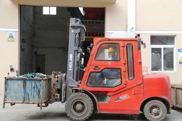上午9時,陽春海創公司生產作業現場酷暑難耐,在撕破碎車間,41歲的生產處副處長周栓成身穿工作服,頭戴安全帽,正在指揮吊裝作業,衣服已經汗濕……