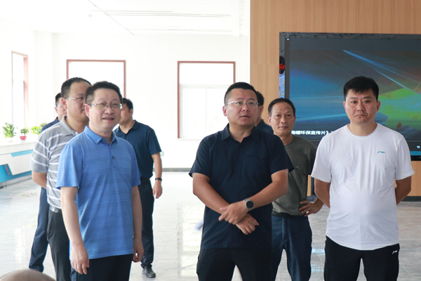 2022年7月31日,弋陽縣縣委書記陳敏一行蒞臨行弋陽海創飛灰水洗項目參觀指導工作。弋陽海創總經理季冰熱情接待了調研組一行。