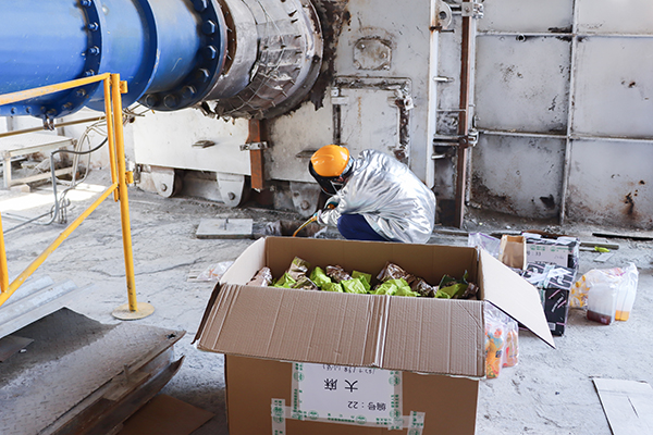 現場共計銷毀冰毒、麻古、大麻、“神仙水”(y-羥丁酸)、氯胺酮級其他各類毒品約200余公斤,品種繁多、社會危害性巨大。毒品押送到廠后,在宣城市人民檢察院、生態環境局等有關單位監督下,執行人員身穿防護服,在1000-1400℃的高溫環境下,把各類毒品投入到窯內焚燒銷毀。