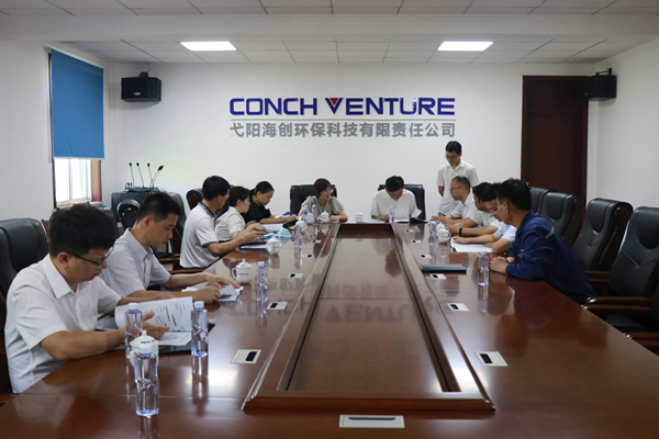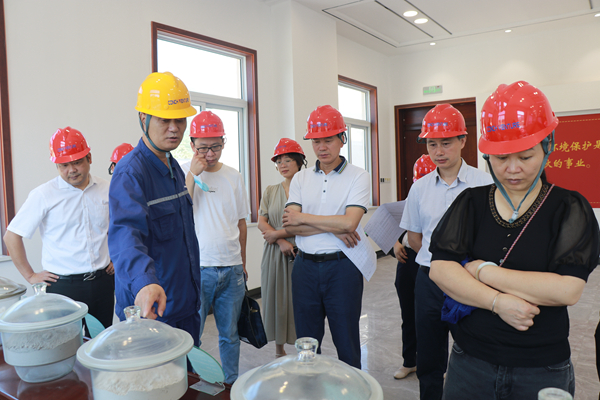 調研期間,陪同領導向督導組一行介紹了弋陽海創水洗飛灰處置技術的技術原理、工藝流程、環保措施管控以及后期發展規劃等情況,并就當前利用水泥窯協同處置飛灰對比傳統填埋的優勢進行了詳細闡述。