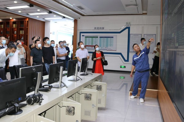 首先,客人一行參觀了主廠房展廳及中控操作室,饒有興趣的聽取水泥窯協同處置固廢工藝流程、生產規模及發展情況介紹,并就協同處置項目的生產運營、技術標準、處置工藝流程、環保指標控制情況等方面進行了交流。