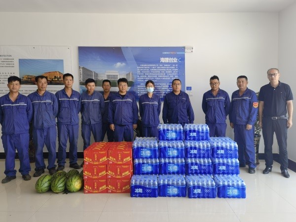 活動中,公司張總深入一線崗位,從多層次、多角度關心一線員工,尤其針對室外工作人員,送去清涼包、防暑降溫藥品、飲品等一系列防暑降溫物資。