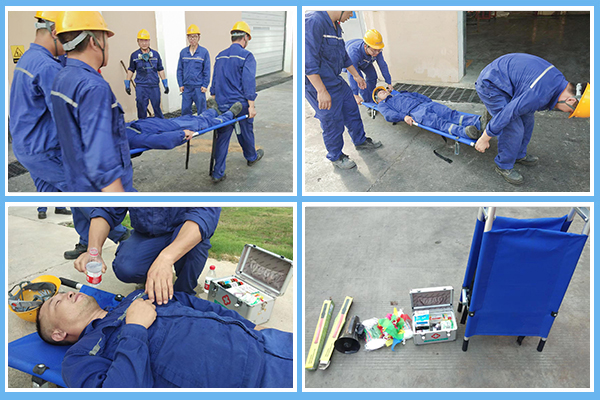 首先部門安全員對參演人員宣讀中暑事故應急演練實施方案步驟,要求參演員工嚴格遵守演練紀律,熟悉救援流程,并將擔架、醫藥箱、急救藥品、器材若干等演練物資配置到位,確保演練安全有序地進行。