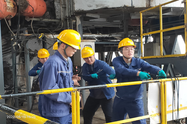 攜手并肩迎檢修,汗流浹背搶進度。為確保無軸鉸刀設備正常運行,提高自動應急能力,安裝監控探頭成為當前至關重要的任務,而此時正是最熱的三伏天。時間緊、任務重,在高溫中,搶修的一線員工們迎著“烤”驗,再一次用行動詮釋了“責任和擔當”;后勤處室人員將這一切看在眼,急在心,他們也主動請纓,來到現場,統一接受一線管理組織,為盡快完成遠程監控伸出援助之手。汗水一次又一次浸透了他們的工作服,但沒有人把時間用在叫苦叫累上,而是擰成一股繩,每個人都在為保生產貢獻自己的力量。