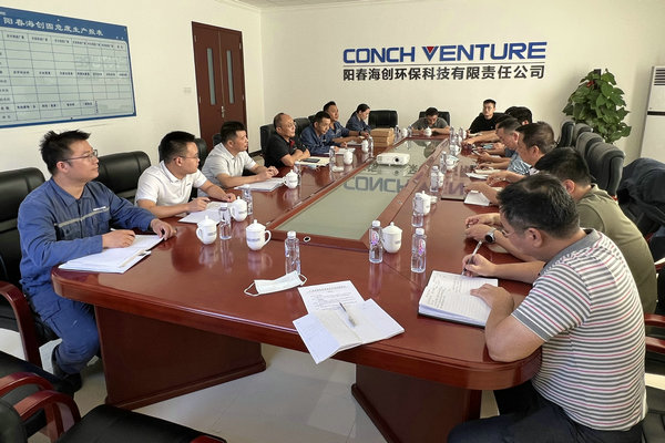 雙方在辦公樓二樓會議室召開了污染土壤水泥窯協同處置技術、管理等方面的調研交流會。陽春海創總經理周本源詳細的為調研專家介紹了海螺環保產業發展情況、水泥窯協同處置污染土壤原理、特點和處置優勢以及陽春海創目前的生產、經營情況,使調研組專家對陽春海創的情況有了進一步的了解。